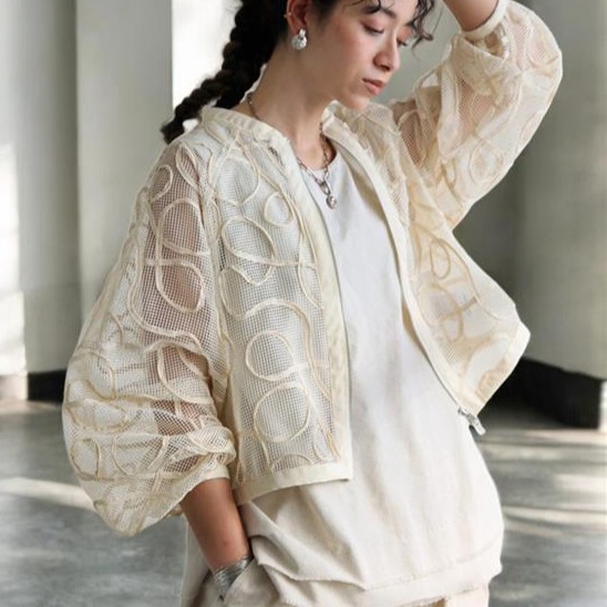 "透け感×立体コードが魅せる。"アートのような『コード刺繍メッシュブルゾン』