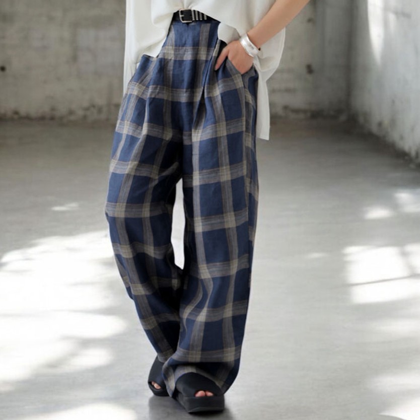 肌に触れた瞬間から心地良い。リネン100%の自然の質感『リネンチェックパンツ』
