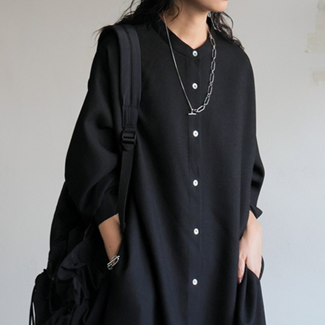 羽織りとしても活躍する前開き仕様で、体型カバー力も抜群『ワッフル布帛シャツワンピース』